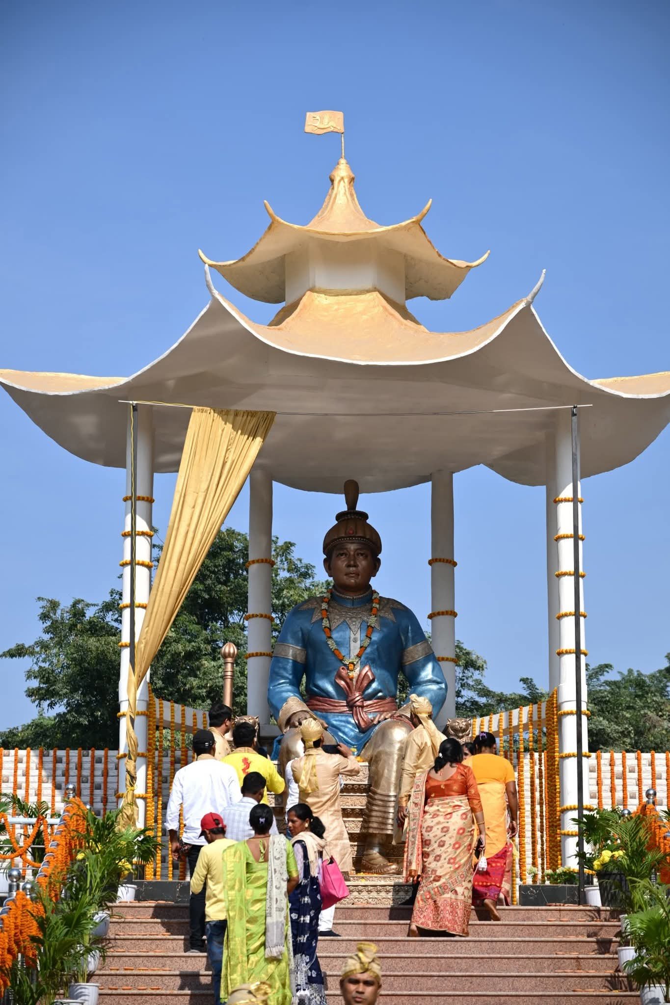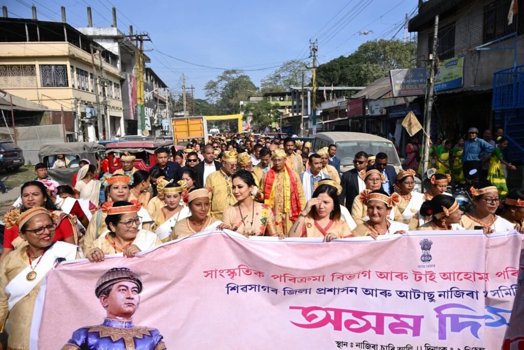 The dignitaries took part in a vibrant cultural procession before converging at Nazira Playground, where they paid floral tributes to Chaolung Sukapha, honouring his enduring legacy in shaping Assamese identity and society. The celebration featured traditional Ahom rituals, cultural performances showcasing the region’s rich heritage, and exhibitions highlighting the historical contributions of the Ahom dynasty.​
