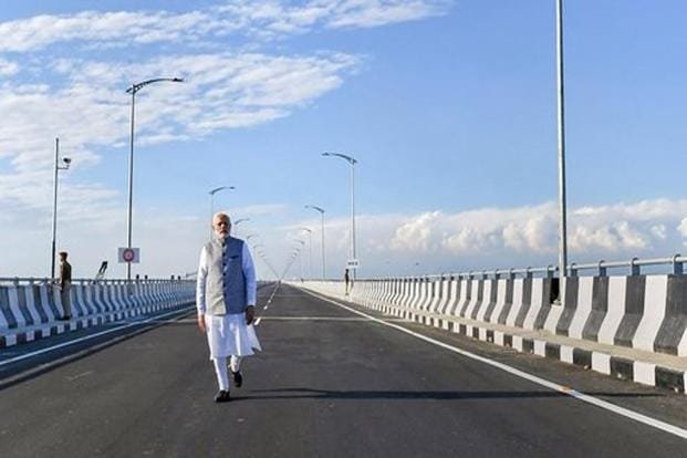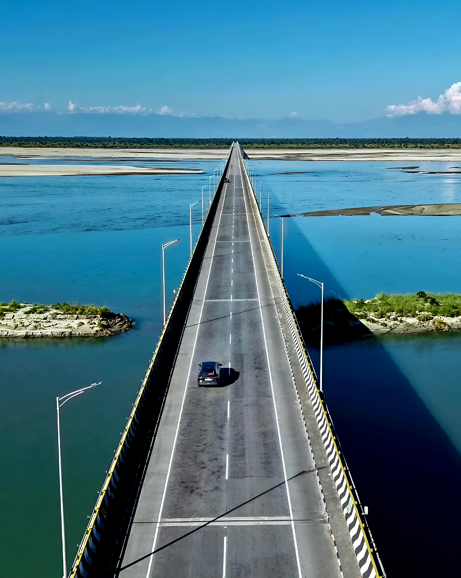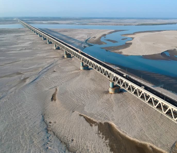 Constructed over the Brahmaputra River, the 4.94-kilometre-long bridge links the southern and northern banks of the Brahmaputra, connecting Dibrugarh with Dhemaji. Part of a strategic infrastructure project built by the Indian Railways, it has significantly improved transport, trade, and defense logistics across the region. The bridge, which serves as both a rail and road corridor, has drastically reduced travel time between Arunachal Pradesh and upper Assam.