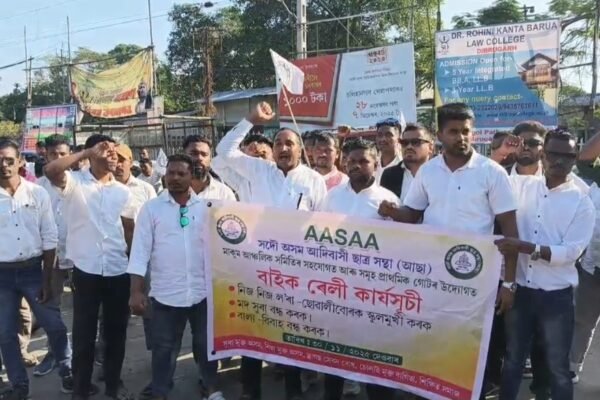 Members of the All Adivasi Students’ Association of Assam (AASAA) staged a bike rally and public demonstration in Makum, Tinsukia district, on Sunday, focusing on eradicating severe social issues prevalent in the region’s tea garden communities. The protest specifically demanded immediate government action against child marriage, the rampant illegal practice of bootlegging, and the harmful…