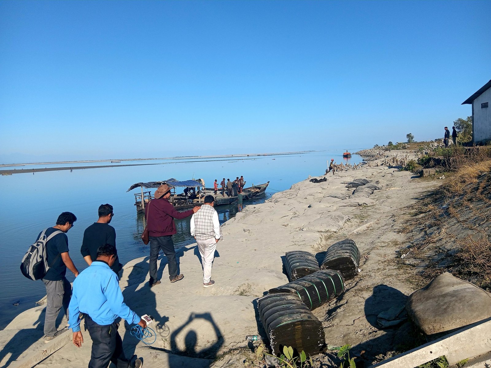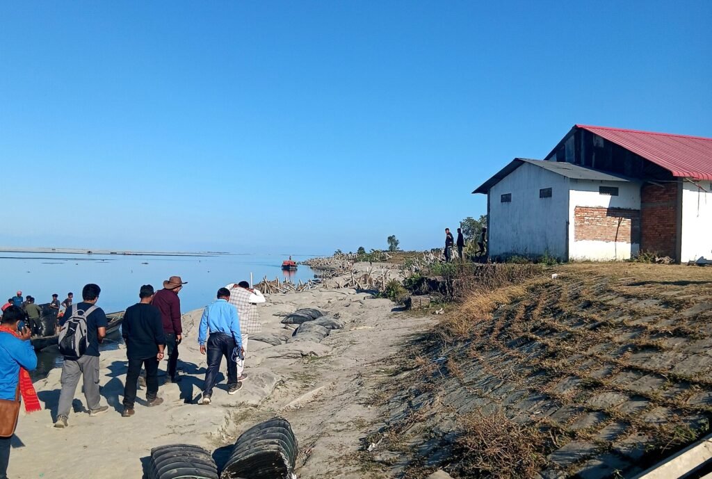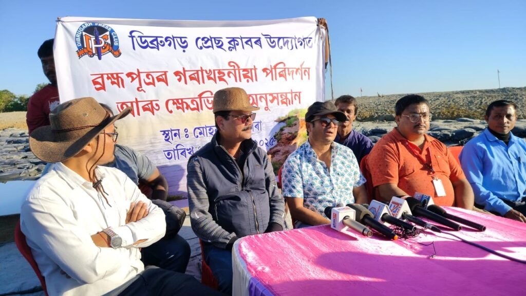 Members of the Dibrugarh Press Club on Saturday conducted a site visit to erosion-affected locations along the Brahmaputra River in the Nagaghuli area, witnessing firsthand the extensive damage caused by over a decade of relentless river erosion and the ongoing protective measures being implemented by authorities.