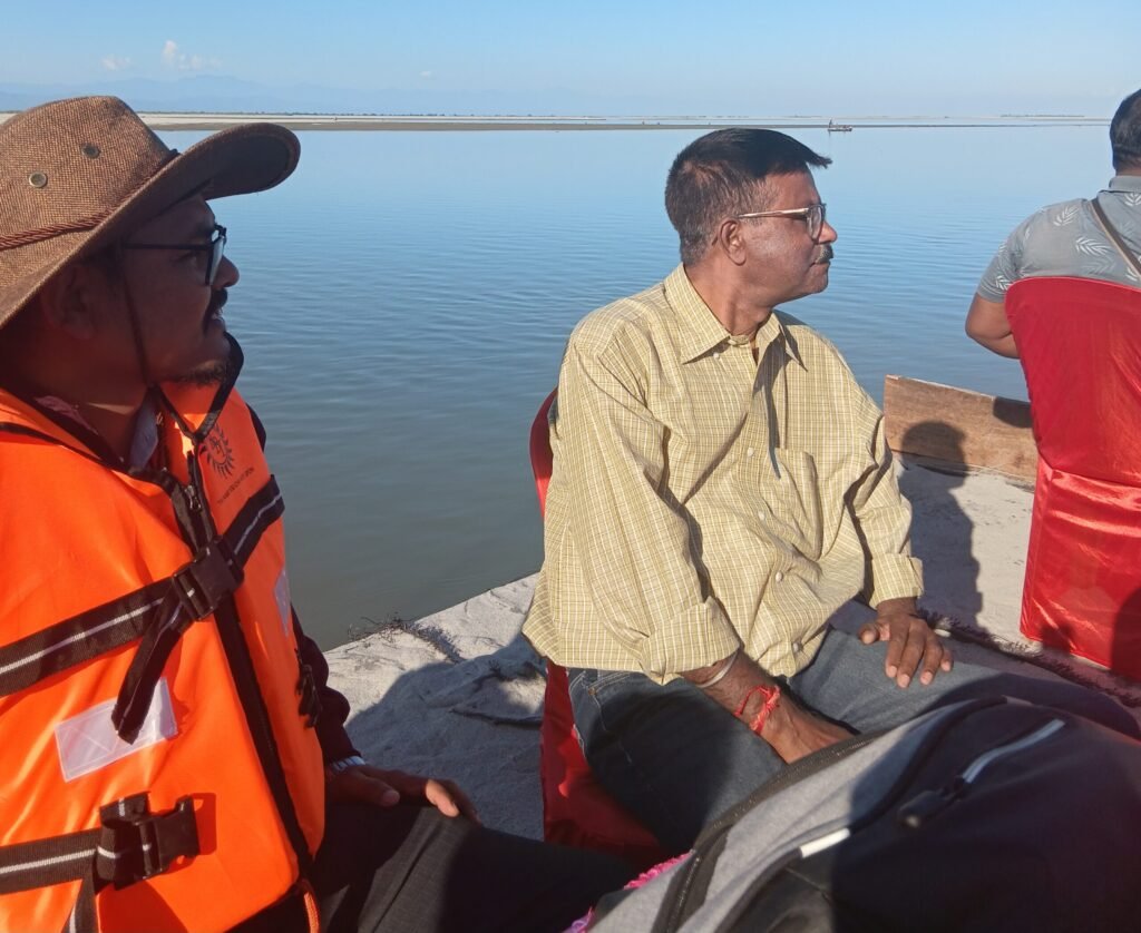 The media delegation, led by Dibrugarh Press Club President Manash Jyoti Dutta and General Secretary Ripunjoy Das, along with other office bearers and members, embarked on a boat ride accompanied by engineers from the Water Resources Department. The team navigated along the vulnerable riverbank to assess both the scale of devastation and the effectiveness of anti-erosion interventions currently underway.