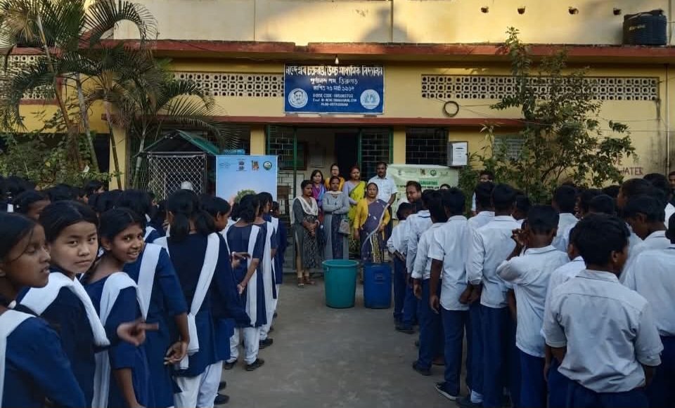 The drive also prioritises behavioural change through education. A “Swachh Varta” awareness session was conducted at Nandeshwar Chakraborty High School, where the Shrishti team interacted with students on proper waste disposal. Students were thoroughly briefed on the critical importance of waste segregation into dry and wet categories for better waste management at both household and school levels, participating actively in the discussion.