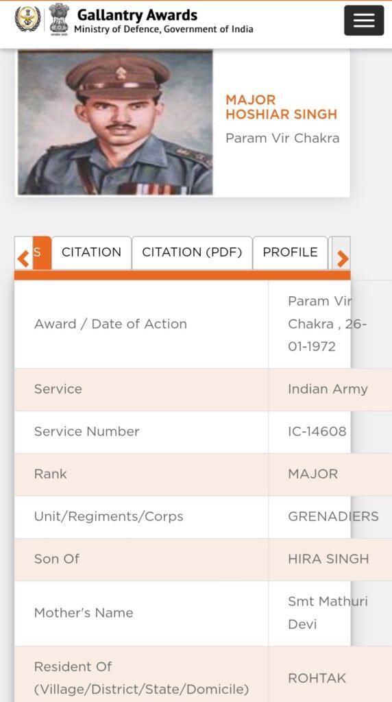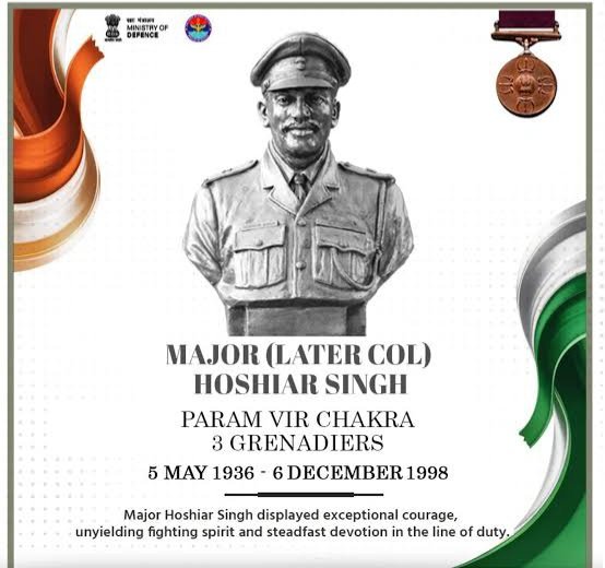In a message of remembrance, Eastern Command hailed Major Hoshiar Singh as a “gallant officer” who showed exceptional courage, determination and conspicuous gallantry despite being seriously wounded in battle. The Command noted that his inspiring leadership motivated his men to hold ground against repeated enemy counter-attacks, embodying “true devotion to duty” under the most hostile conditions.