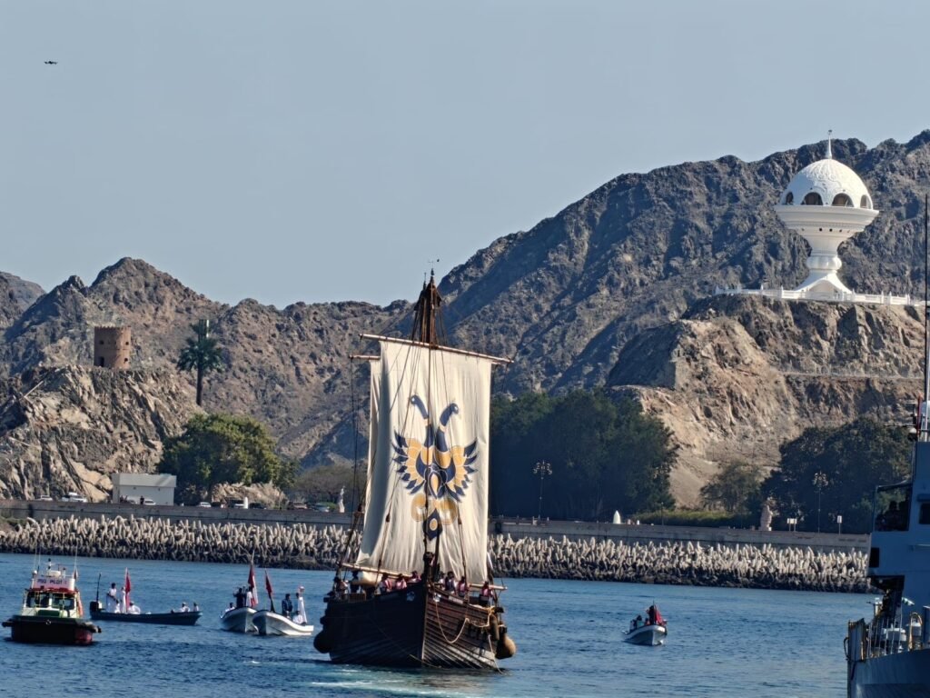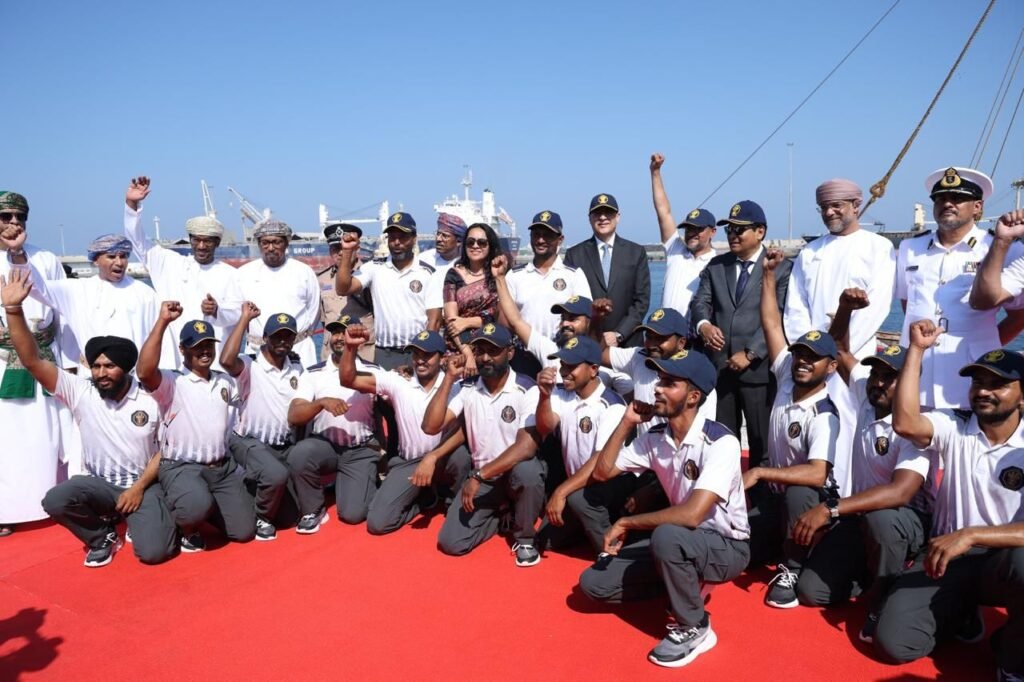 The vessel, which departed Gujarat on December 29, 2025, was received with a ceremonial water salute and a high-profile welcome party led by India’s Union Minister of Ports, Shipping & Waterways, Sarbananda Sonowal, and Oman’s Undersecretary of Tourism, H.E. Azzan Al Busaidi.