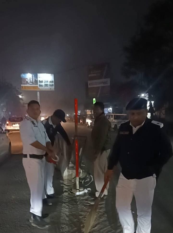 In a move to prevent accidents during the extreme foggy weather conditions this winter, Jorhat Traffic Police have launched a safety drive by installing reflector strips at multiple locations across the city.The initiative, which comes as the region experiences dense fog and coincides with the ongoing picnic season, involves pasting reflector strips on road dividers, light posts and other roadside structures to enhance visibility for motorists during low-visibility conditions.