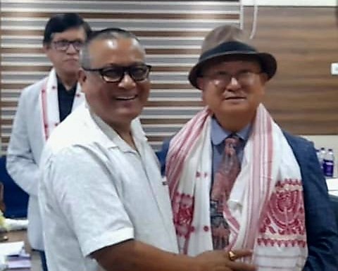 DHSK College Principal Dr Sashi Kanta Saikia felicitates writer Seok Yong Chang