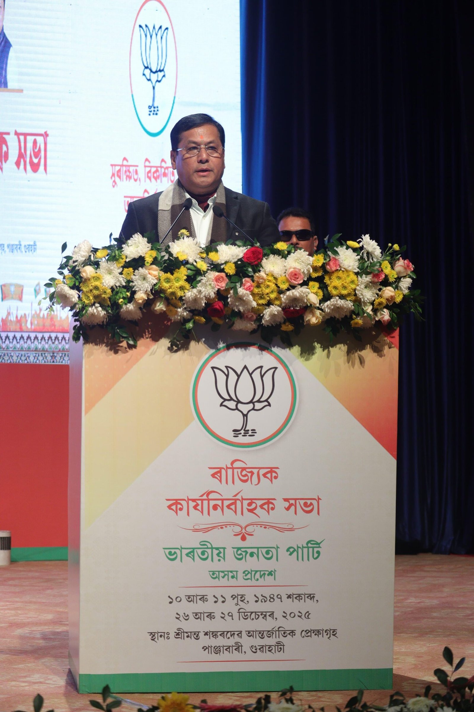 Union Minister of Ports, Shipping & Waterways, Sarbananda Sonowal, delivered a keynote address at the BJP Assam Pradesh State Executive Meeting in Guwahati on Sunday, calling on party workers to leverage the “Double Engine” government’s goodwill while warning against internal discord ahead of the 2026 Assembly elections.